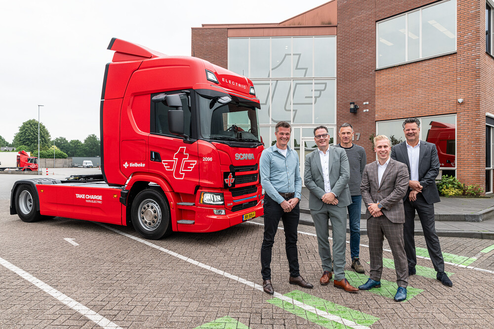 Tielbeke heeft gisteren zijn eerste volledig elektrische Scania-trekker in gebruik genomen. De Scania 36G 4x2 BEV vormt een belangrijke mijlpaal in de duurzaamheidsambitie van het bedrijf om vóór 2030 de helft van het wagenpark emissievrij te laten opereren.